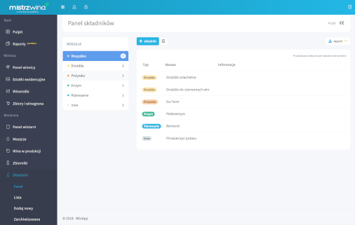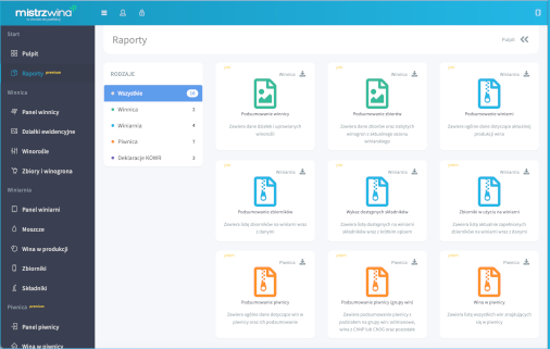 Winnice mogą również pobrać raporty zawierające dane niezbędne do składania corocznych deklaracji do Krajowego Ośrodka Wsparcia Rolnictwa (KOWR).
