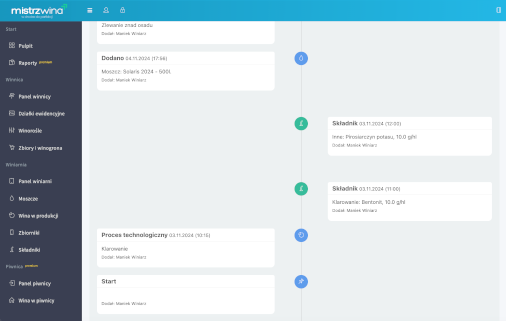 Pobieraj szczegółowe raporty z każdego etapu produkcji wina