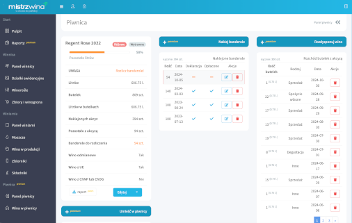 Przechowuj wina w piwnicy, rejestruj banderole, rozdysponowuj zapasy i generuj szczegółowe raporty.