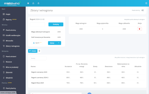 Pobieraj szczegółowe raporty z każdego etapu produkcji wina