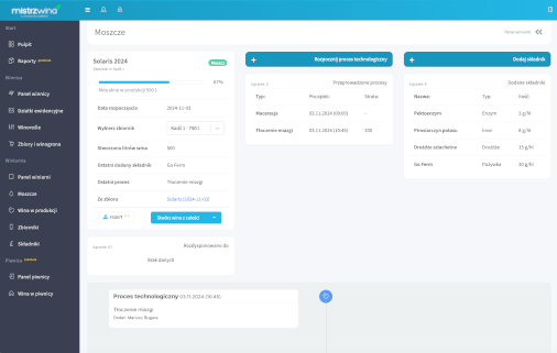 Rejestruj każdy etap procesu produkcji, umieść w zbiorniku, dodawaj składniki i analizuj historię tworzonych win.